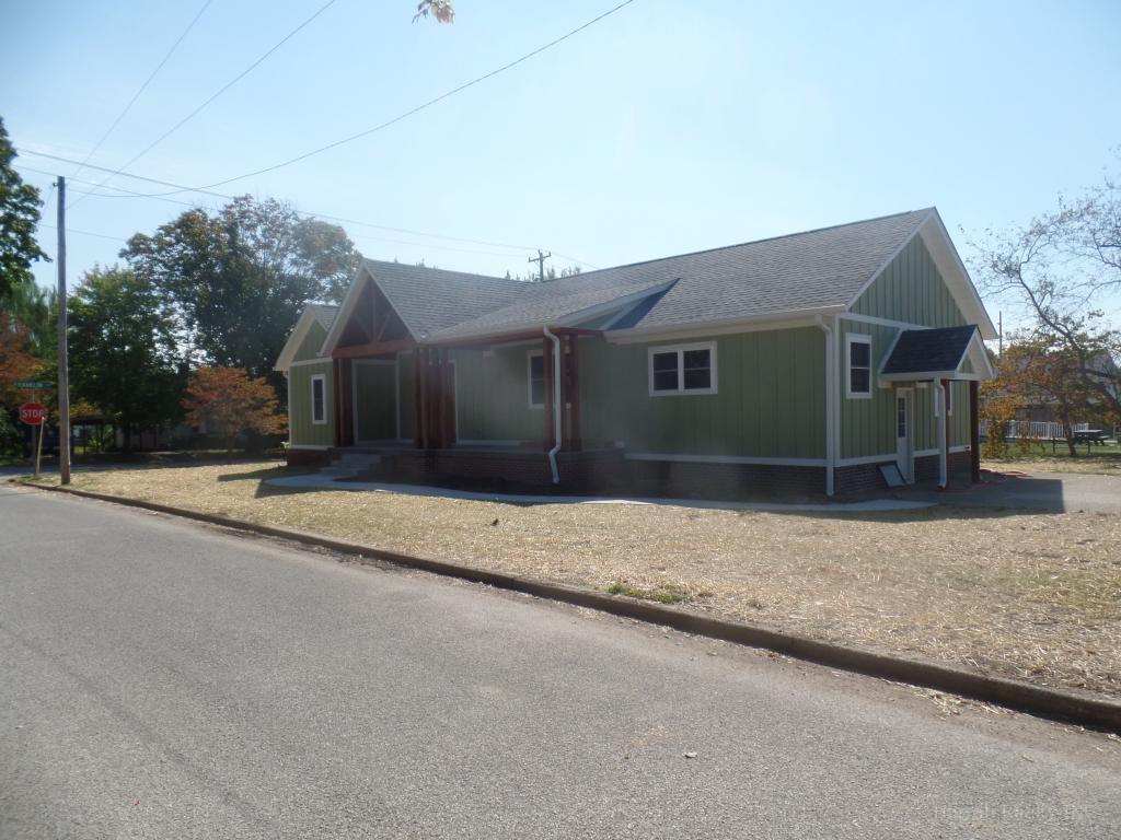 - Just blocks from the downtown square sits this 3-bedroom home with 2 full baths. Large living room with a cathedral ceiling has a fireplace that is just wanting for a ventless gas log. Kitchen has all new stainless-steel appliances and numerous custom-built cabinets. Primary suite has plenty of windows for natural lighting. The en suite has a large shower, walk-in closet and dual sinks. Other 2 bedrooms at the other end of the house has large closets and there is another full bath also with dual sinks. Laundry area off the kitchen has a sink and cabinets. Floors in the main rooms are Red Oak Hardwood. Nice sized covered front porch, side yard has a concrete patio area, and back yard could be used for entertaining also. Furnace and A/C are less than 2 years old. 1-car detached garage.