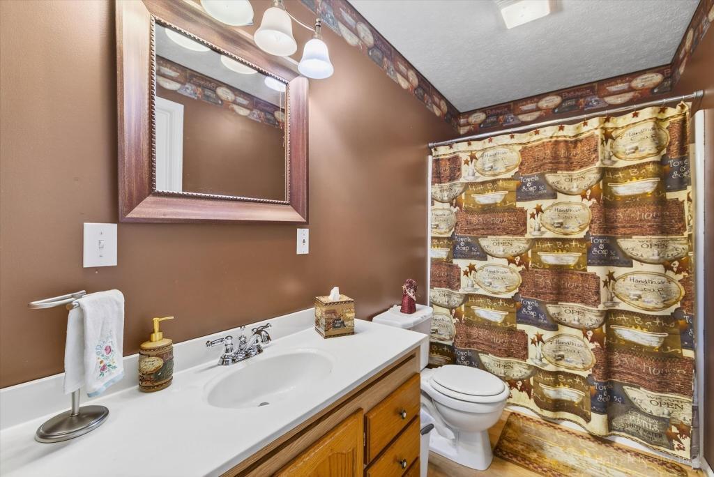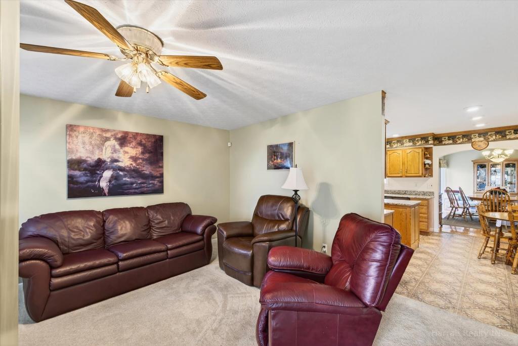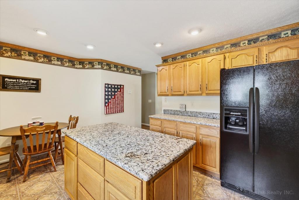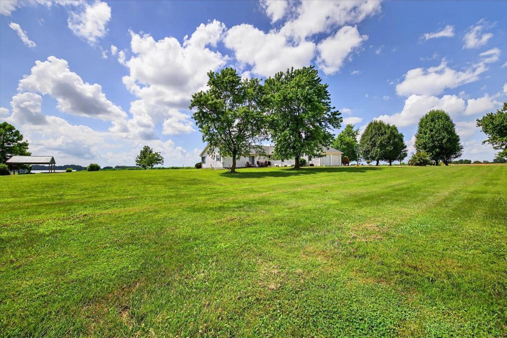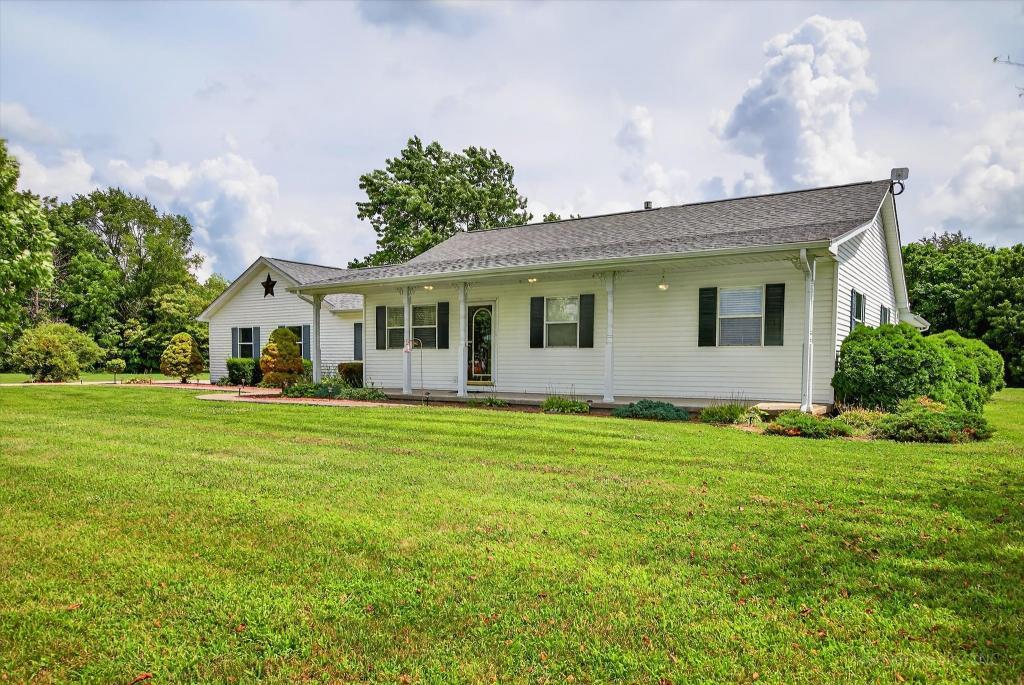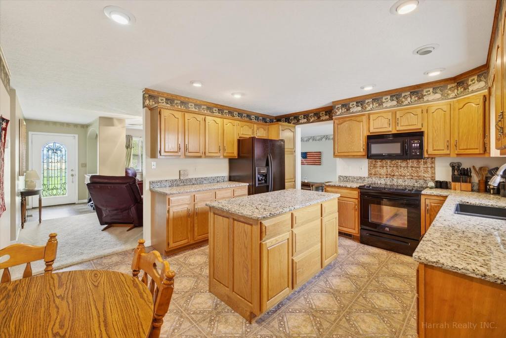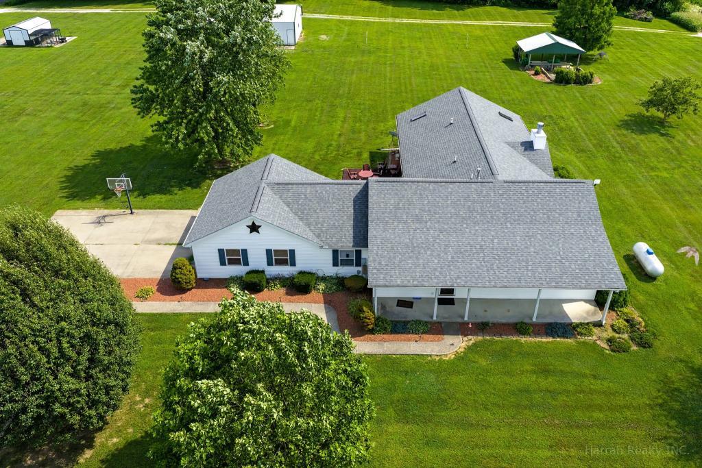 - Well-maintained home with 4 bedrooms. Enter to the living room and continue to the kitchen. Kitchen has granite countertops, island for extra prep space and an area for a dining space. Open concept to the dining room which has patio doors leading to a concrete pad patio with all-weather mats. The large family room has vaulted ceilings and a wood-burning fireplace. Just off this area is the primary suite with a full bath that has dual sinks, a jetted tub, separate shower and walk-in closet. A separate part of the house contains the laundry, another full bath and 3 additional bedrooms. One of these bedrooms also has an attached full bath to create a secondary primary suite. Basement has been finished to add a rec room and also has a full bath. There is plenty of storage in this space also. There is a 2-car attached garage. Outside is a huge yard that contains a 2 bay pole barn w/workshop that is heated with propane, a wood stove. An open-sided shelter house that contains a stone firepit. Property does have 2 furnaces/AC units.