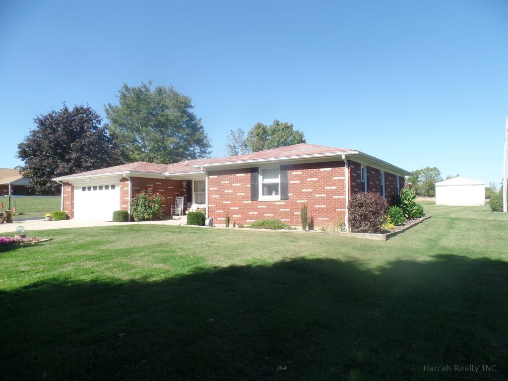 - Lovely brick home on just over 1 acre. This is a very well-maintained home. Enter into the living room and into the dining room. The kitchen has a breakfast bar with seating and is open to the family room. The family room also contains a half bath. There are sliding patio doors that lead to the large covered back deck. It contains a primary suite with a full bath with access via barn doors. and 2 additional bedrooms, one of which has dual closets and another full bath. Engineered hardwood floors run through the main living areas. There is an attached 2-car garage which also contains the laundry area. Just behind the house is a second 2-car garage with a concrete floor and electricity to provide plenty of storage. Another huge outbuilding sits further back on the edge of the property and could be used for storage of boats, RV, etc. This also has a concrete floor but no utilities. Paved driveway for easy clearing in those winter months. Large backyard has space for everyone to play.